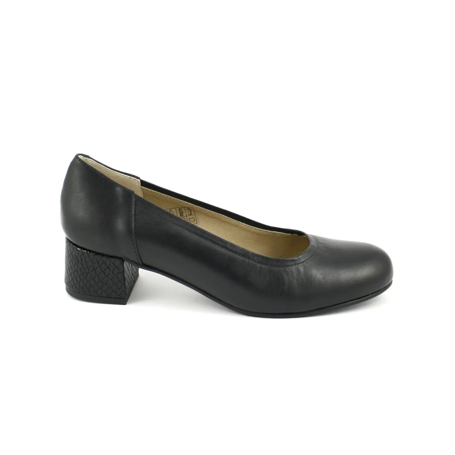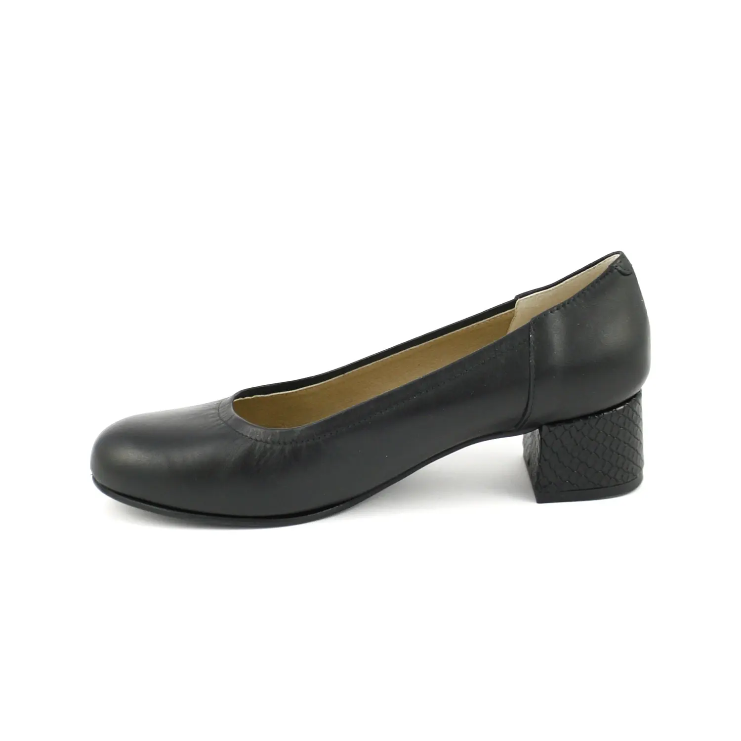 Ragazza 865 – Salón en piel lisa y tacón en piel grabada en negro